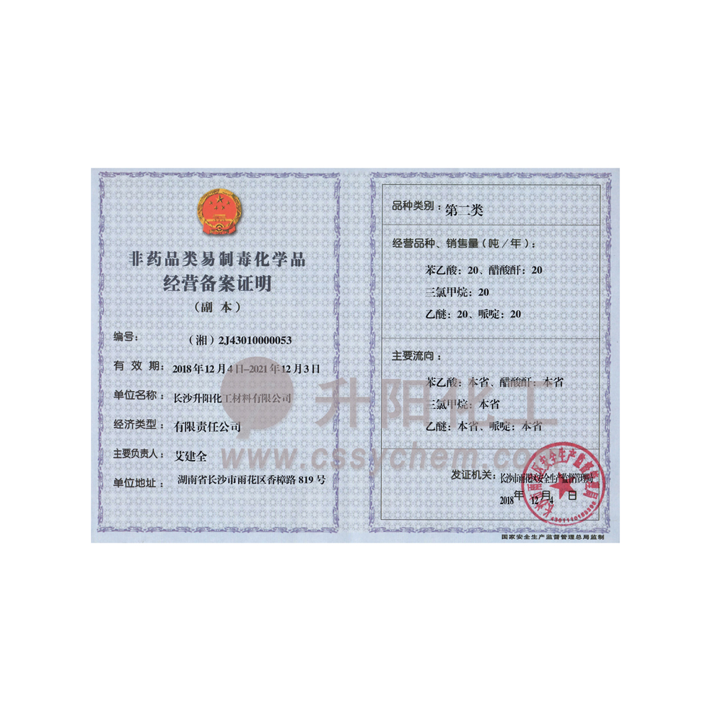 長(zhǎng)沙升陽(yáng)化工材料有限公司成立于2009年,是一家已經(jīng)擁有10年化工原料經(jīng)營(yíng)歷史的企業(yè)。我們本著“服務(wù)至上,以誠(chéng)為本”的原則,為廣大的新老客戶(hù)提供最優(yōu)質(zhì)的產(chǎn)品、最便捷的服務(wù)。歷經(jīng)10多年的積淀與發(fā)展,現(xiàn)已成長(zhǎng)為湖南省頗具規(guī)模的專(zhuān)業(yè)化學(xué)品服務(wù)供應(yīng)商之一。?公司集貿(mào)易,科研,倉(cāng)儲(chǔ),物流為