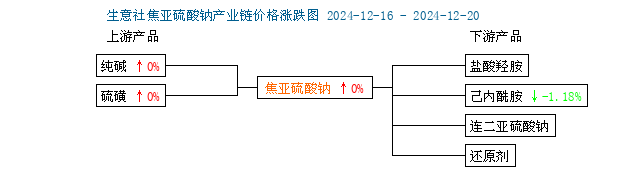 本周國內(nèi)工業(yè)級焦亞硫酸鈉市場價格暫穩(wěn),焦亞硫酸鈉上游純堿和硫磺價格本周價格暫穩(wěn),下游己內(nèi)酰胺價格下跌0.59%,下游市場成交冷清對焦亞硫酸鈉市場影響有限,焦亞硫酸鈉廠家報價維持穩(wěn)定。(以上價格均指國內(nèi)主流企業(yè)對外報價,部分未報企業(yè)暫不在其范圍內(nèi),價格僅供參考,與廠家最終定價無關(guān),詳情請聯(lián)系各廠家咨詢)。